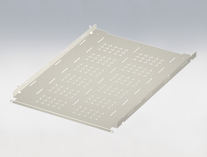 ●サーバーラックに工具無しで簡単に取り付けできる固定型の棚です。