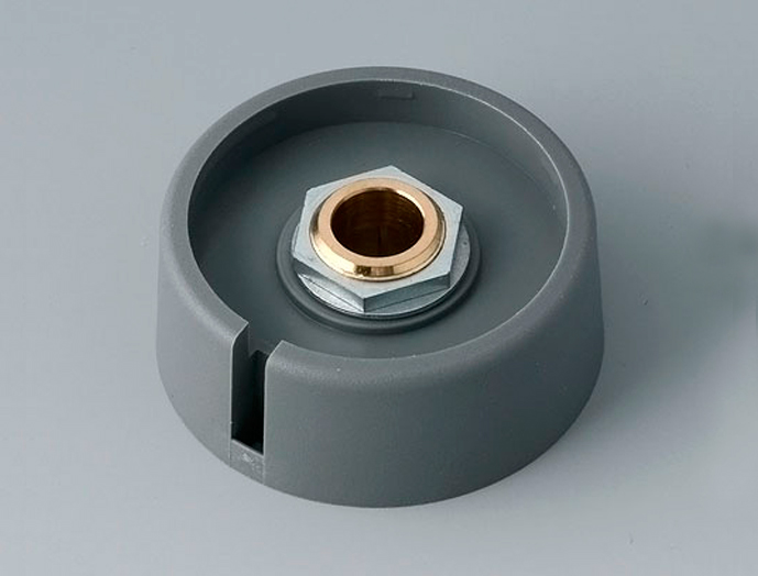 ●コムノブ OKSシリーズは、ノブ(ツマミ)に別売のキャップ・ピークを組み合わせ、美しいデザインとモダンな色づかいで機器に洗練された外観をもたらせます。
