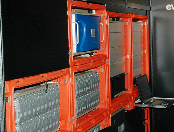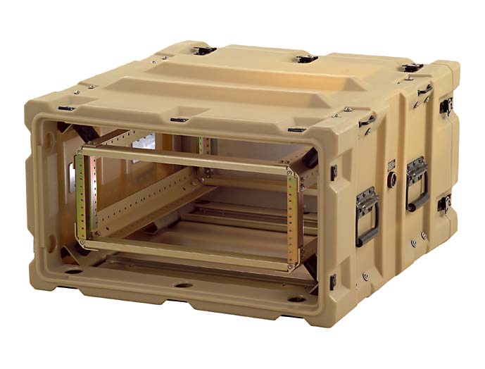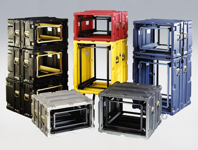 耐衝撃・防滴構造の19インチ機器搭載専用のプラスチック製可搬ラック(コンテナ)