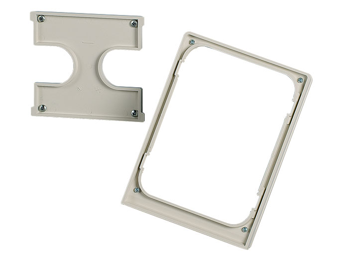●H型の壁掛けホルダーを壁に取り付け、アダプターを付属のねじで下カバーに取り付け、壁掛けホルダーのフック部分にアダプターを引っ掛けることによって壁に掛けることができます。