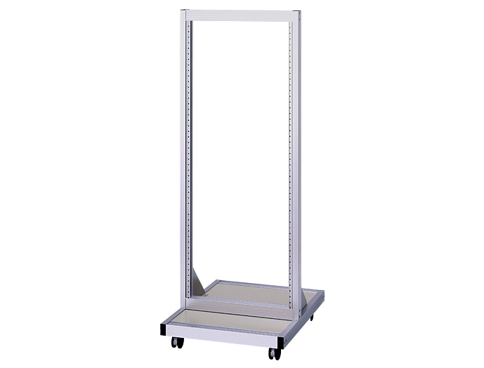 アルミフレーム仕様で高級感があり、軽量な19インチオープンラック