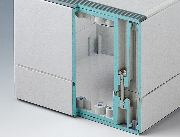 ●パネルマウントフレームとラック内側面の隙間を埋め、収納機器の排出する熱が前面側に回りこむのを遮蔽し、冷却効率を向上します。