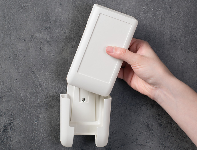 ●ホルダーをケースに電池ボックス蓋の部分で固定することで、壁面に対し、ねじ固定することができます。