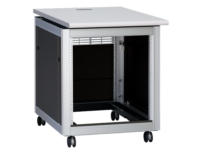高機能型、アルミフレーム仕様で軽量な19インチマウント付デスクキャビネット