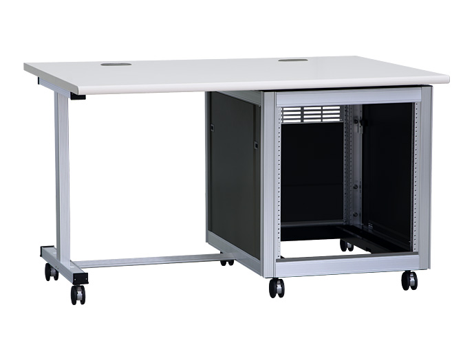 高機能型、アルミフレーム仕様で軽量な19インチマウント付ラックデスク