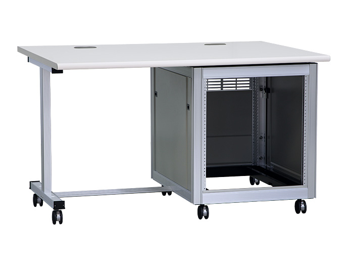 高機能型、アルミフレーム仕様で軽量な19インチマウント付ラックデスク