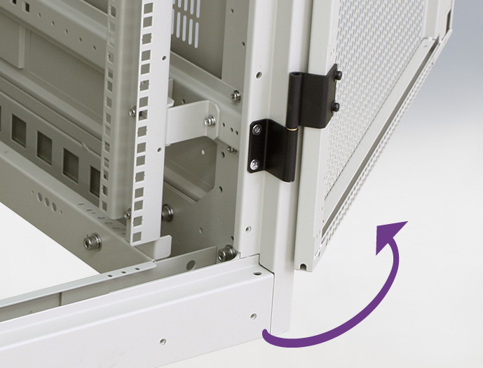 ●棚の四角穴を利用すれば機器固定ベルト(別売RAKBシリーズ)による簡易固定が可能です。