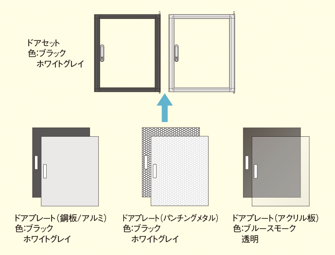 ●ラックの前面にドアが必要な場合に、取り付けます。