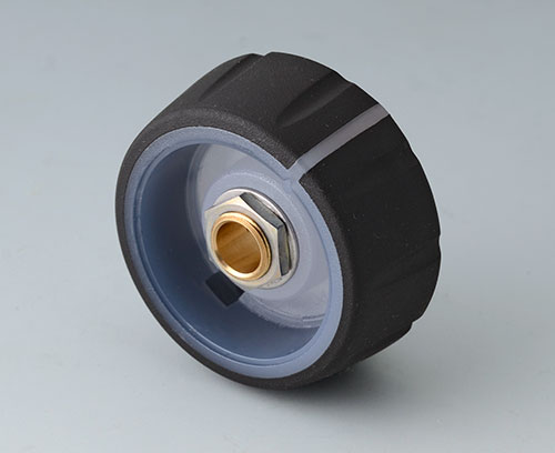 ●堅牢なポリカーボネ-ト製の本体と、機能的な溝を設け、滑り止め効果と心地よい手触りのTPE製グリップを一体成形させたノブです。