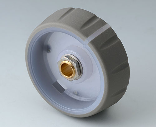 ●堅牢なポリカーボネ-ト製の本体と、機能的な溝を設け、滑り止め効果と心地よい手触りのTPE製グリップを一体成形させたノブです。