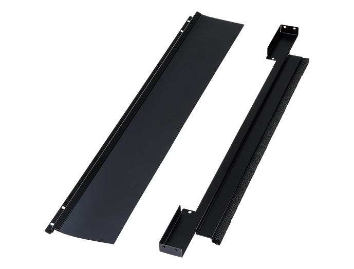 ●パネルマウントフレームとラック内側面の隙間を埋め、収納機器の排出する熱が前面側に回りこむのを遮蔽し、冷却効率を向上します。