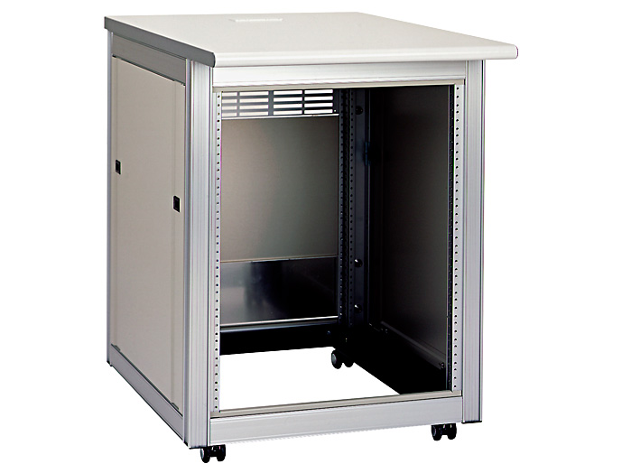 高機能型、アルミフレーム仕様で軽量な19インチラックデスクキャビネット