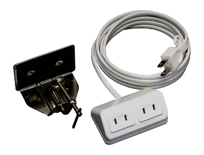 ●デスク・タップ:プラグの着脱がしやすいように差し込み口が45°に傾いています。タップは、ご利用目的に合わせ、平面側面それぞれ2方向クランプにセットできます。