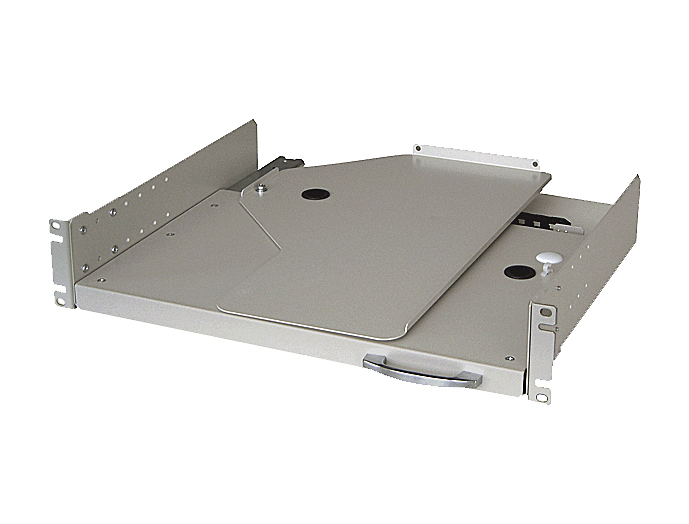 回転して引き出せる、19インチラックマウント仕様のキーボード・マウス用テーブル
