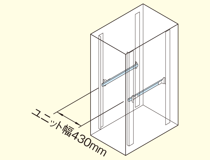 ●別売のスライドレール等を使用すればスライド方式の棚となり、サポートアングル(L型レール)を使用すれば、固定棚として使用できます。