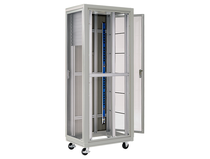 カスタマイズが容易なアルミフレーム仕様の、19インチキャビネットラック