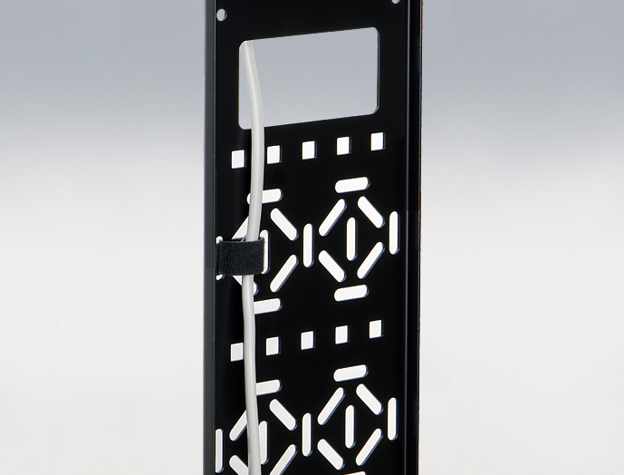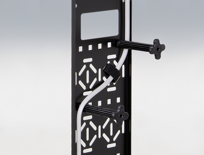 ●T字形の穴または長丸穴を利用すれば、別売の機器固定ベルトによる簡易固定が可能です。
