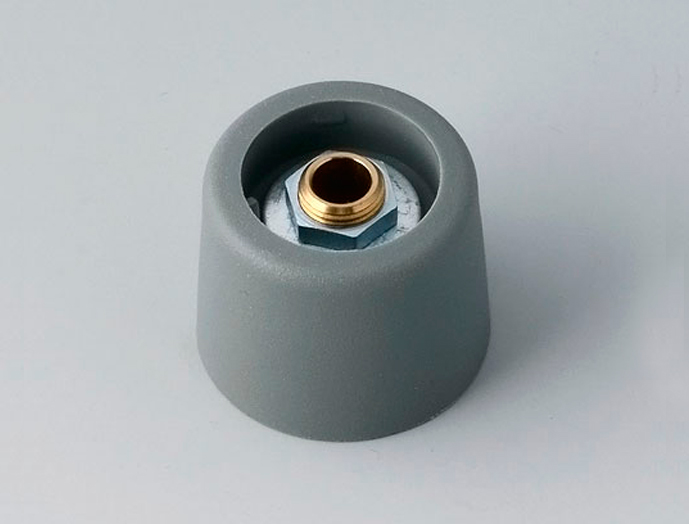 ●コムノブ OKSシリーズは、ノブ(ツマミ)に別売のキャップ・ピークを組み合わせ、美しいデザインとモダンな色づかいで機器に洗練された外観をもたらせます。