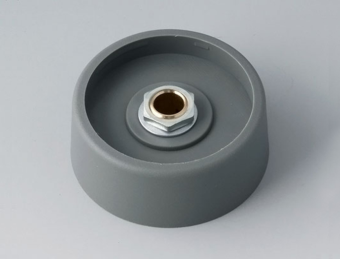 ●コムノブ OKSシリーズは、ノブ(ツマミ)に別売のキャップ・ピークを組み合わせ、美しいデザインとモダンな色づかいで機器に洗練された外観をもたらせます。