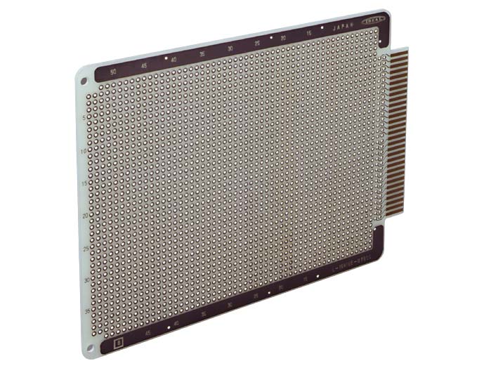 ●トランジスタからIC、LSIまで、あらゆる部品が実装できるよう2.54mmピッチ間隔で孔あけ加工されており、孔は全機種ともスルーホールとなっています。