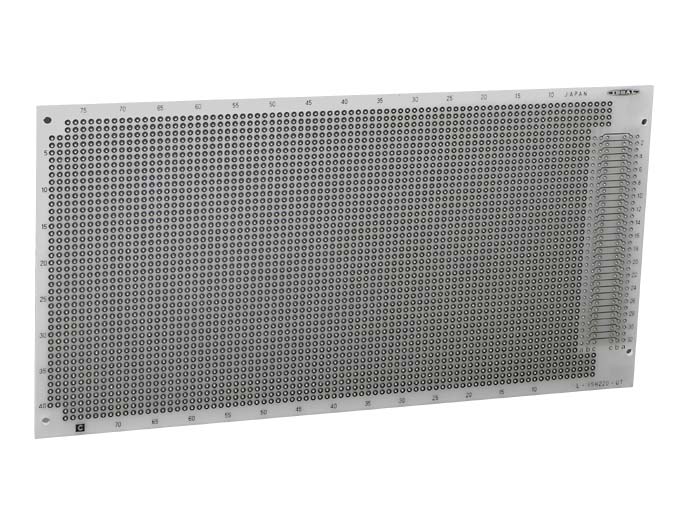 ●トランジスタからIC、LSIまで、あらゆる部品が実装できるよう2.54mmピッチ間隔で孔あけ加工されており、孔は全機種ともスルーホールとなっています。