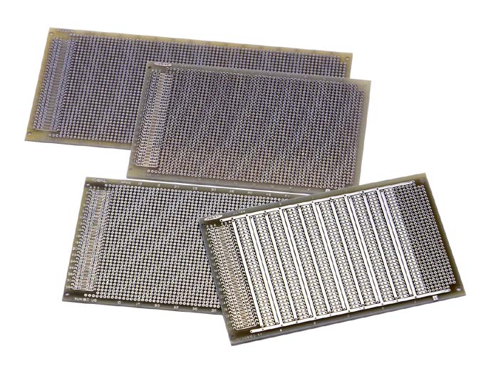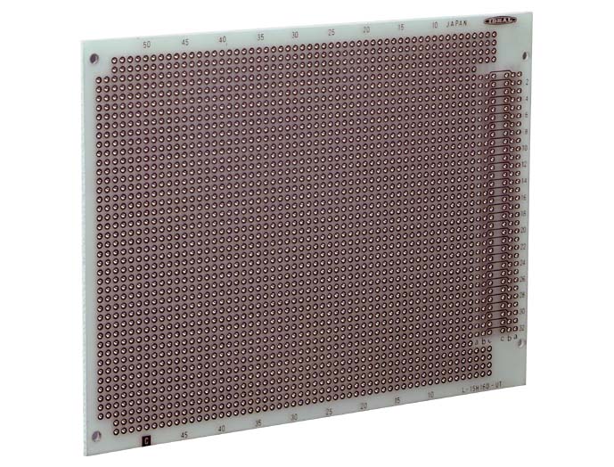 ●トランジスタからIC、LSIまで、あらゆる部品が実装できるよう2.54mmピッチ間隔で孔あけ加工されており、孔は全機種ともスルーホールとなっています。