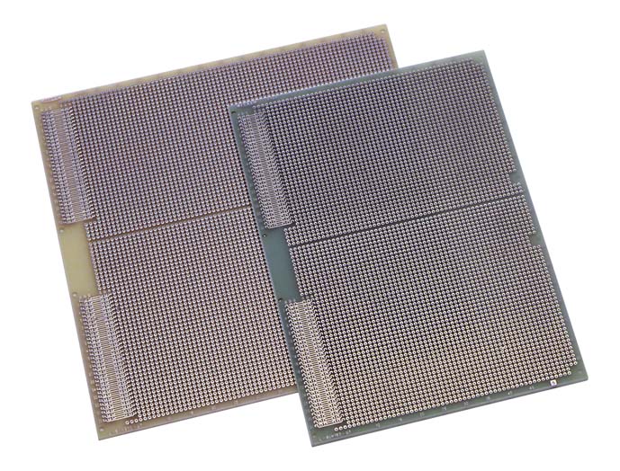 ●トランジスタからIC、LSIまで、あらゆる部品が実装できるよう2.54mmピッチ間隔で孔あけ加工されており、孔は全機種ともスルーホールとなっています。