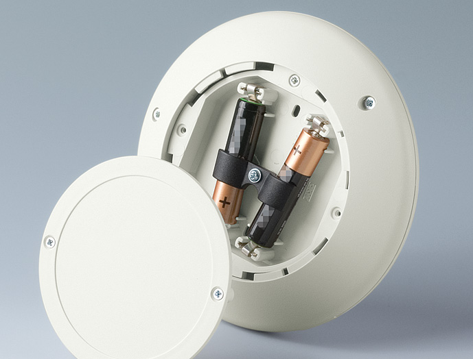 ●電池ボックスを取り付ける場合は、本体に格納するタイプ(単4形×2本用)と、ベースに格納するタイプ(単3形×2本用)の2種類を用意しています。
