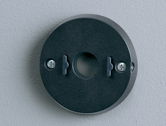 ●丸形の機種は、回転かみ合わせ式の上下カバー構造により外からはビスや結合部分が見えません。必要な場合は付属の固定ねじを追加して、上下カバーの固定が可能です。