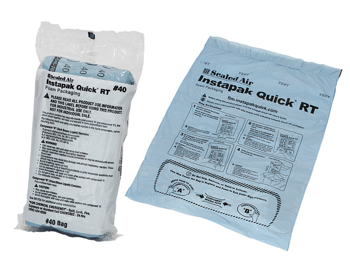 ●袋の中に入っている2種類の液体を混合させることで瞬時に膨らみ、ポリウレタン発泡緩衝材を形成します。