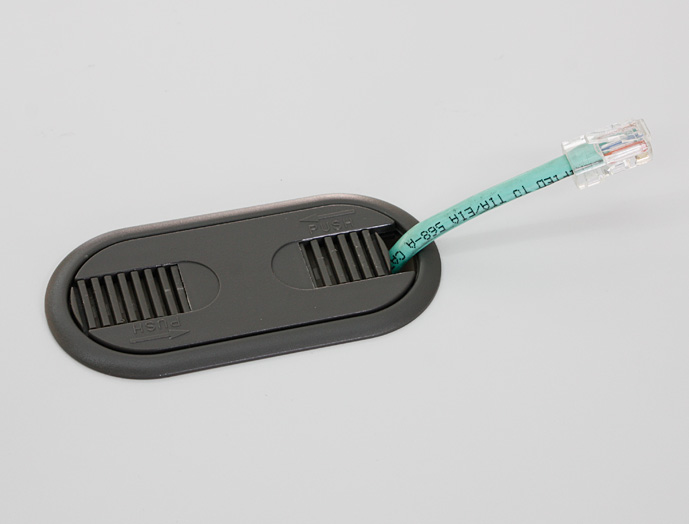 ●ベースの難燃性膜厚グロメットに穴を開け、配線が可能です。