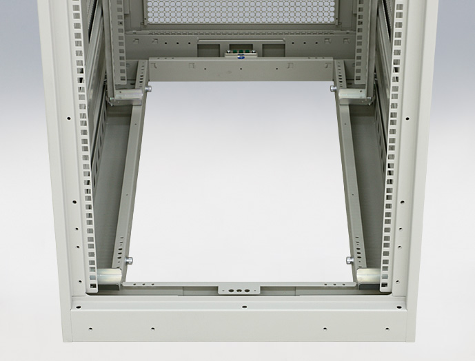 ●棚の四角穴を利用すれば機器固定ベルト(別売RAKBシリーズ)による簡易固定が可能です。