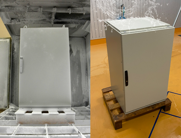●ケーブル入出線用に上下面に配線用穴を設けています。開口部は埃を防ぐゴム板がついています。