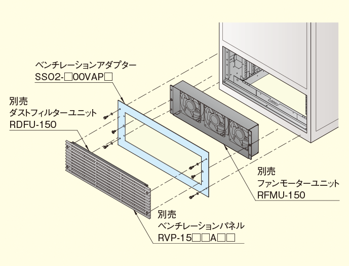 ※ラックの場合、型番をクリックすると、使用できるアクセサリーの一部がページ下部に表示されます。