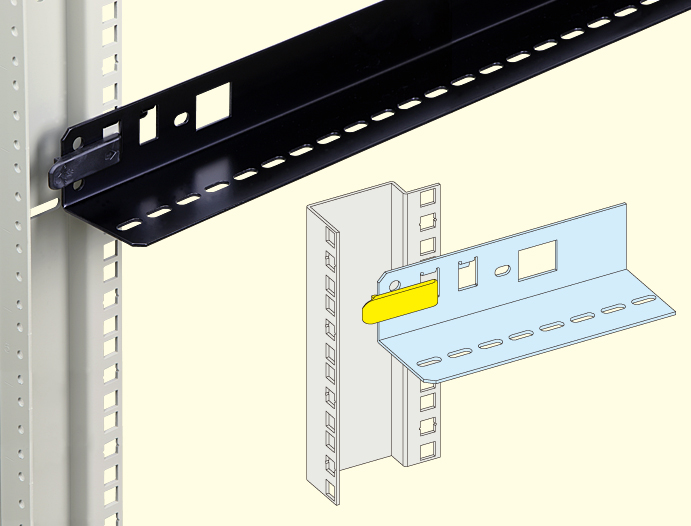 ●2分割サーバーラックSSR2シリーズへの固定方法は取付穴を利用したねじ止めになります。ピッチが合えばM5のねじ穴に対して付属のねじで固定できます。
