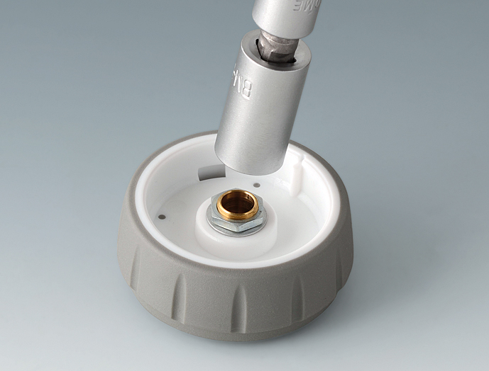 ●ラック用クーラー(SCNシリーズ)のドレン水排出口に取り付け、付属のバンドで固定します。