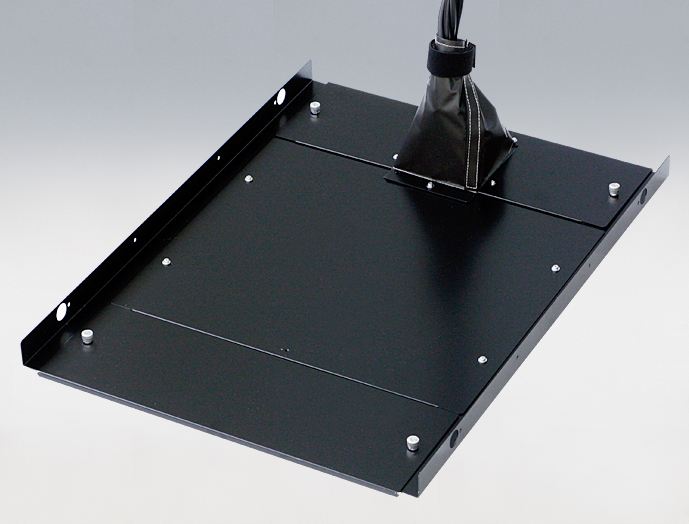 ●電源、通信ケーブル用の配線穴をラック下面に設置しています。