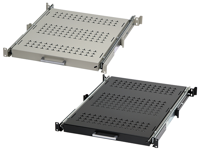 ●19インチラックに前後マウント等で取り付けることができるスライド式の棚です。