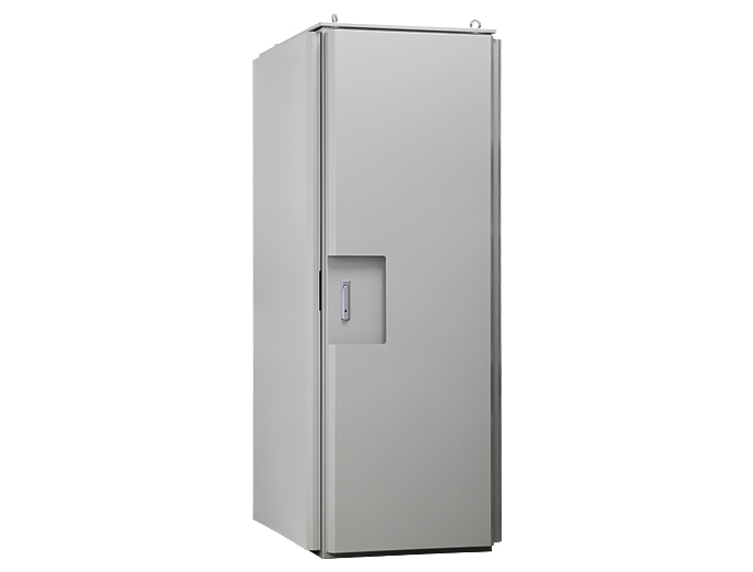 雨や台風に耐える防塵防水対策の、日除け板付き屋外用大型サイズ19インチラック