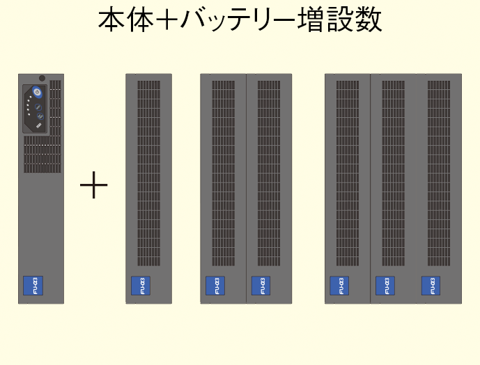 ●バックアップ(保持)時間は3~85分(バッテリー増設数により異なります)。