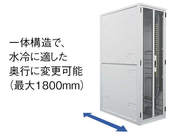 ●一体構造で、水冷に適した奥行に変更可能(最大1800mm)