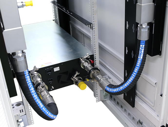 ●CDU・マニホールドなどのデルタ電子製の水冷機器を組み合わせたラック構成をトータルで提案