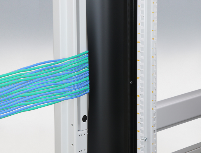 ●ラック内に引き込まれたケーブルと配線穴とのスキマを埋めることができる巾着付です。