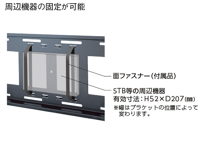 ●付属の面ファスナーを用いて周辺機器をベース内側に固定できます。