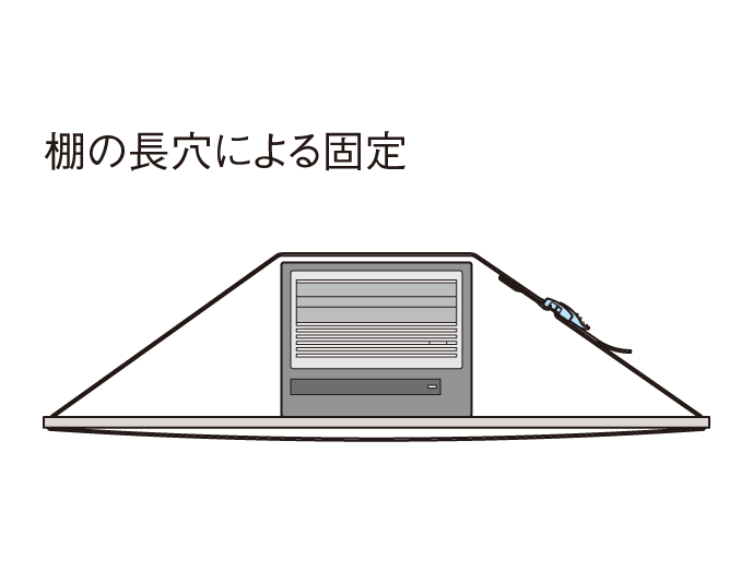 ●ラックを移動する場合などに機器を棚板に簡易固定する目的で使用します。