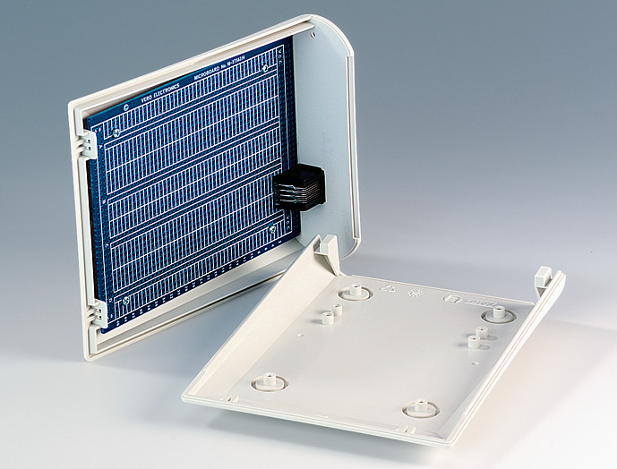 ●内部には上下カバー組み立て用ボスと、基板・部品の取り付けに使えるボスを備えています。