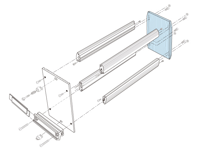 ●カードガイドを取り付けるとき、前端はフロントWフレームに取り付けますが、後端はガイドフレームに取り付けます。このガイドフレームを前後方向、任意の位置にて取り付ける場合に用います。