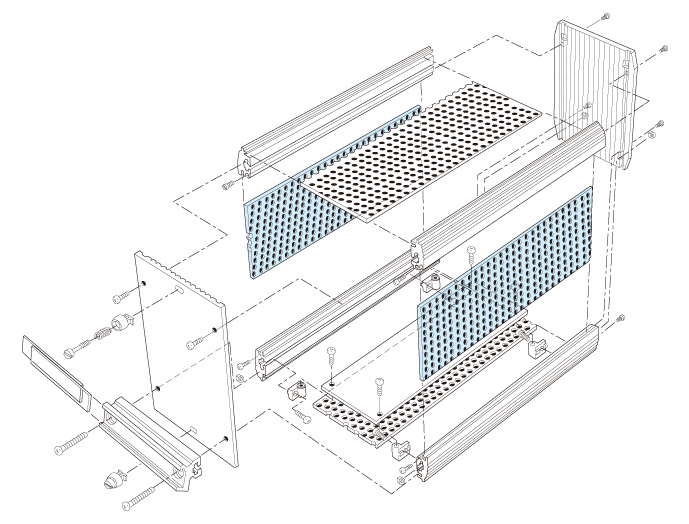 ●サブラックRKU2シリーズの内部を幾つかのブロックに仕切ったり、PCBを応用例のように収納したい場合に用いるフレームです。
