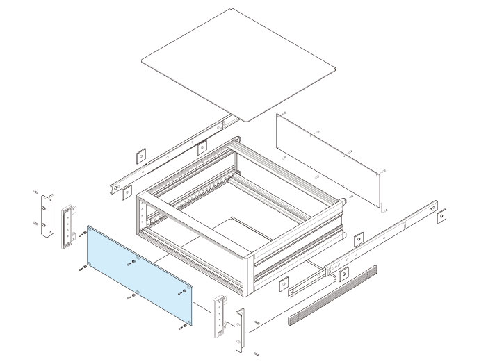 ●操作部品Ⅰ/O用コネクタ等を取り付けていただけるはめ込み固定型フロントパネルです。