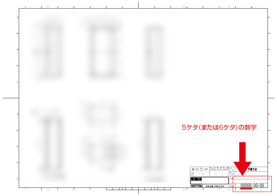 特注のカスタムラックをはじめ、SETTSUではお客様との打ち合わせに合わせてラック図面を作成しお客様と取り交わしている事が多くあります。お手元にある実績資料のなかで、5ケタ(または6ケタ)の数字があれば図番である可能性が高いです。